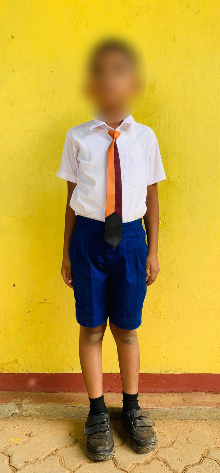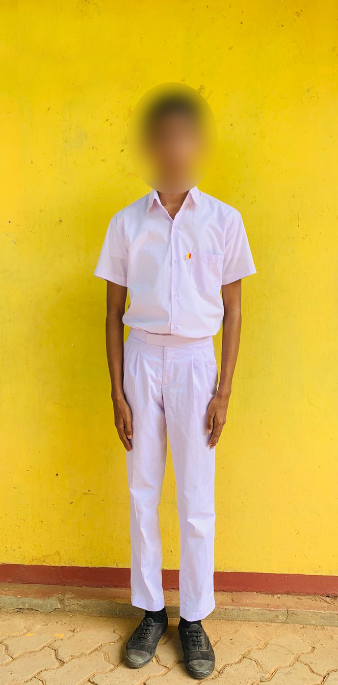6 වසරේ සිට 9 වසර දක්වා නිල් කොට කලිසම් ද 10 වසරේ සිට 13 වසර දක්වා සුදු දිග කලිසමද වන්නේය. කහිපට මැස්මෙන් මසා තිබිය යුතුය.දෙපසට පොකට් දෙකක් තැබීය යුතුය. ඩෙනිමි බොත්තම් / බැජ් නොඇල්ලිය යුතුය.පෝල්ට එක තම දනහිස දක්වා පහසුවෙන් එක්විය හැකි ප්රමාණයට වට රවුමක් තබා තිබිය යුතුය.අගල් 15-17 අතර වට රවුම පෝල්ට් එකේ ප්රමාණය
